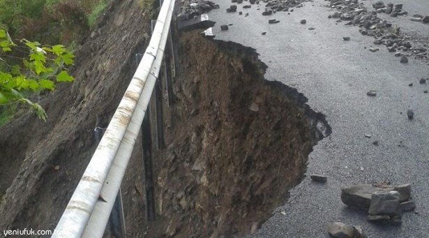 Aralıksız devam eden yağışlar, yolda çökme meydana getirdi..