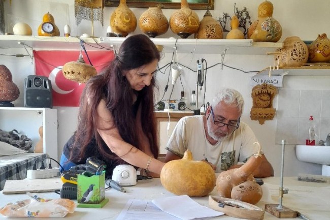 Geçmişte su taşımak için kullanılan su kabakları, Burhaniye ilçesinde Hesna ve Cevdet Ekmekçi çiftinin usta ellerinde sanat eserine dönüşüyor. Ekmekçi çifti tarafından su kabakları yanında Türkiye'de ilk kez kurutulmuş hayvan iskeletleri de işleniyor.