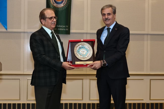 Konuşmasının ardından Vakıf Başkanı Çelik, iftar programının düzenlenmesinde büyük emeği olan Büyükşehir Belediye Başkanı Yusuf Alemdar'a katkılarından dolayı plaket takdim etti.