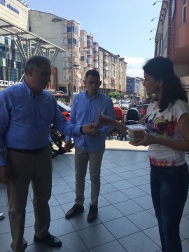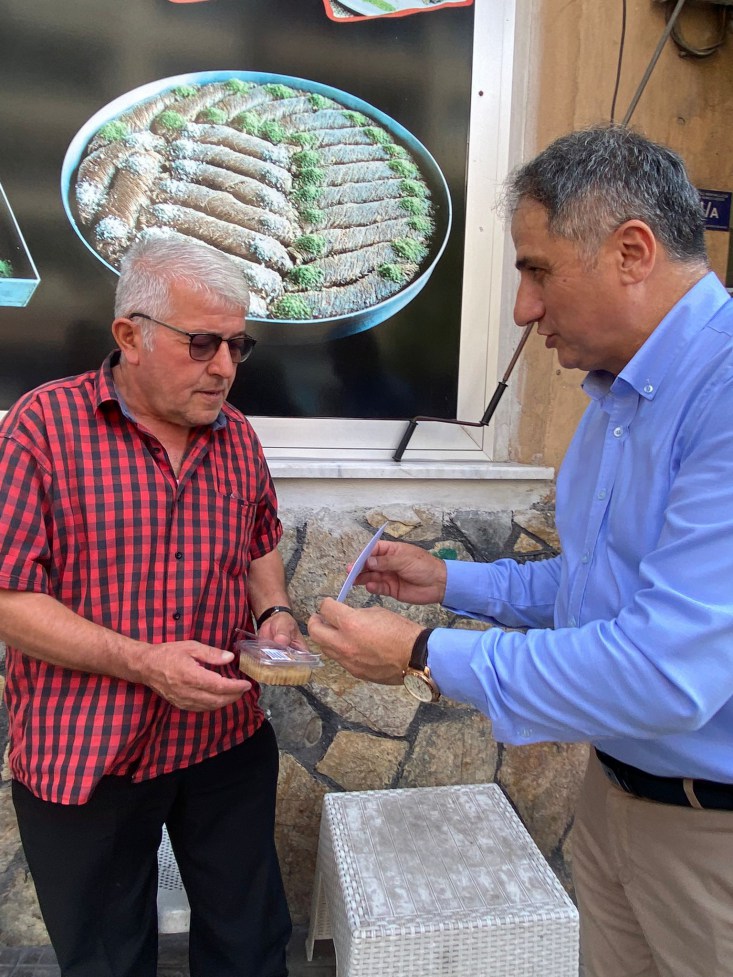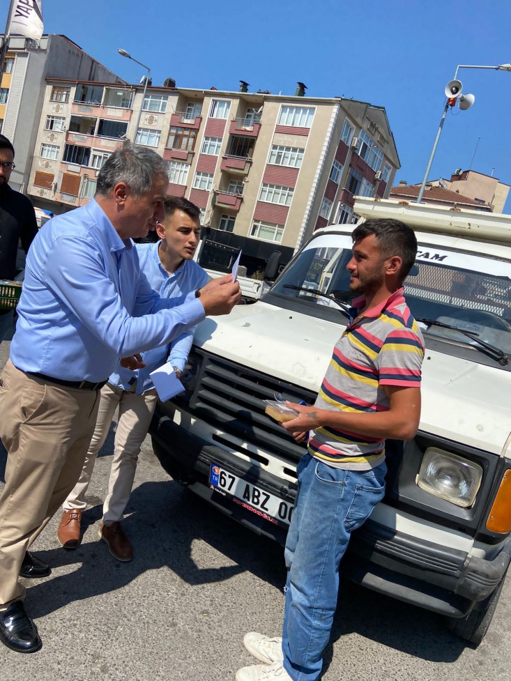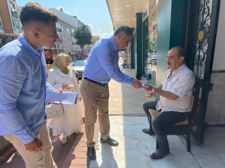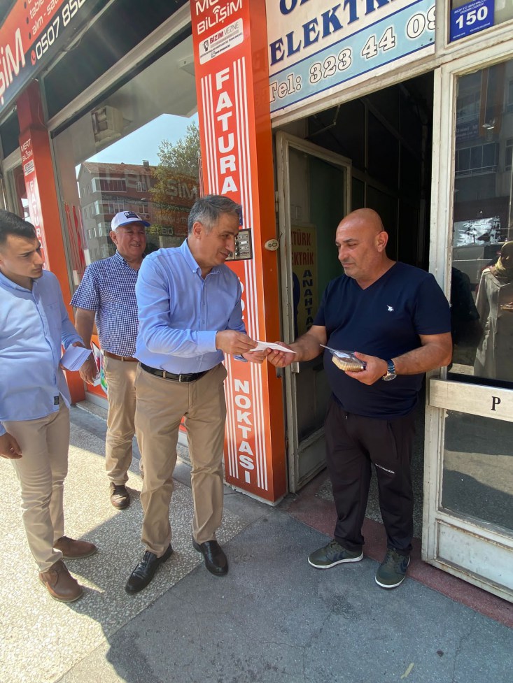 AK Parti Kdz. Ereğli İlçe Başkanı Saffet Bozkurt, partililer ile birlikte kapı kapı dolaşarak Cumhurbaşkanı Recep Tayyip Erdoğan'ın imzasıyla gönderilen mektupları esnaf ile vatandaşlara teslim etti ve aşure ikramında bulundu.