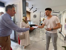Bozkurt ve partililer, Cumhurbaşkanı Recep Tayyip Erdoğan'ın AK Parti'nin 21. yıl dönümü için kaleme aldığı mektupları teslim etti ve Aşure ikramında bulundu.