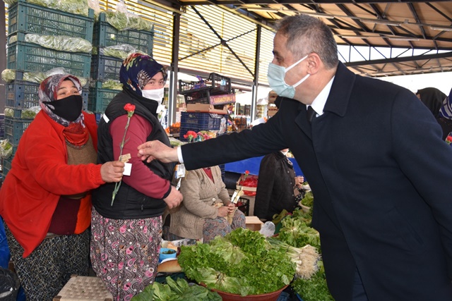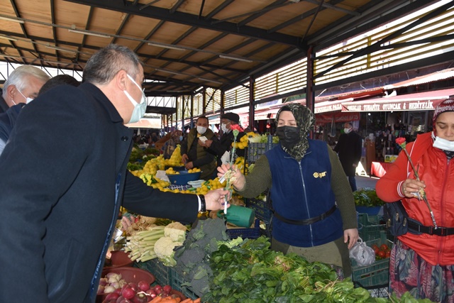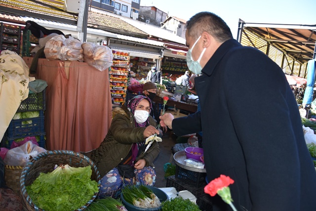 AK Parti Kdz. Ereğli İlçe Başkanı Saffet Bozkurt, Yönetim Kurulu Üyeleri, Kadın ve Gençlik Kolları Yöneticileri ile birlikte; bugün sabah saatlerinde ilçe merkezindeki Pazaryerine giderek, kadın Pazar esnafına karanfil takdim edip Dünya Emekçi Kadınlar Günü’nü kutladı.