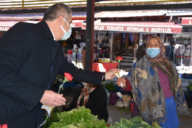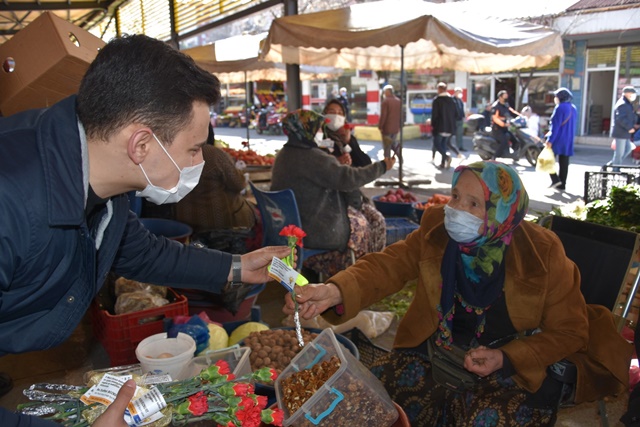 AK Parti Kdz. Ereğli İlçe Teşkilatı; 8 Mart Dünya Emekçi Kadınlar Günü’nü, Pazaryerinde karanfil ve maske dağıtarak kutladı.