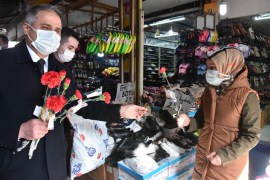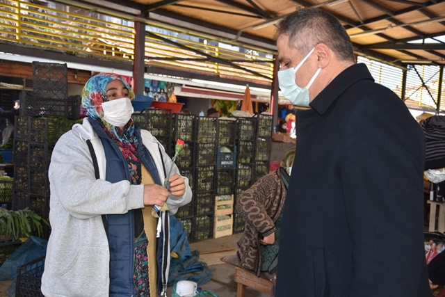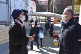 Başkan Bozkurt ve ekibi 8 Mart'ı karanfil ve maske ile kutladı