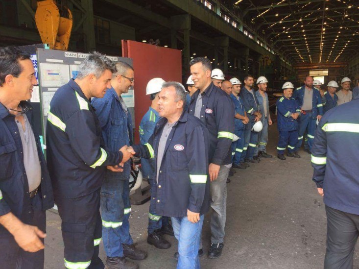 Başkan Ercan’ın, 2 gün süren; Demir Üretim Direktörlüğü, Sinter Hammadde ve Maniplasyon İsletme ve Bakım grubu çalışanları, 1 ve 2.Sıcak Haddehane, Sürekli Dökümler, Çelikhane, Hadde Atelyeleri, Nakliyat, Oto Bakım Grubu, 1 ve 2.Soğuk Haddehane İsletme ve Bakım, Enerji Üretim ve Dağıtım, Atelyelere bağlı Mekanik Bakım, Elektrik Bakım, Elektronik Otomasyon Müdürlüğü, Refrakter, Hadde Atelyeleri, Ambarlama ve Sevkiyat Müdürlüğü, 2. Yüksek Fırın bölgesinde çalıan üye ziyaretlerine, şube yöneticiler iile iş yerleri temsilcilerdi de katıldı.