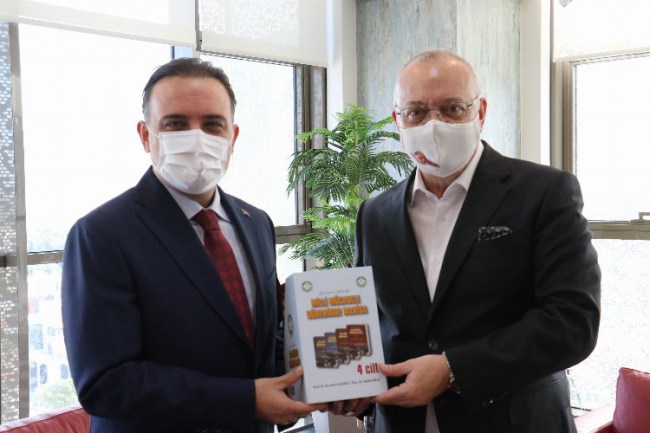 MANİSA(İGFA)- Manisa Büyükşehir Belediyesi’nin yeni hizmet binasının hayırlı olması temennisinde bulunan AK Parti MKYK Üyesi ve Manisa Milletvekili Murat Baybatur, Başkan Cengiz Ergün’e çalışmalarında kolaylıklar diledi. Ziyaretten duyduğu memnuniyeti ifade eden Manisa Büyükşehir Belediye Başkanı Cengiz Ergün, Baybatur’a ‘Yüzüncü Yılında Milli Mücadele Döneminde Manisa’ isimli 4 ciltlik eseri armağan etti.
