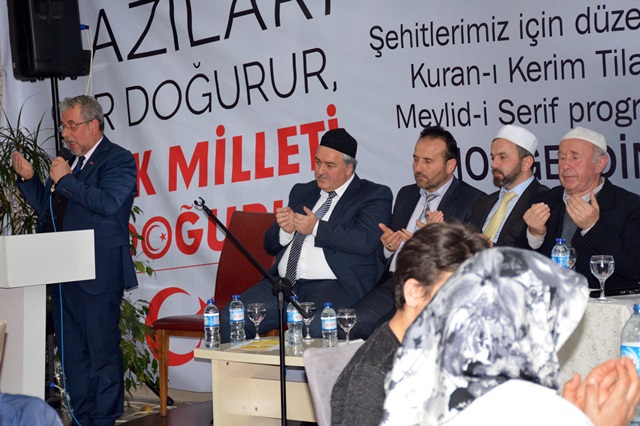 Programda tüm şehitler için belediye ve müftülük hocaları tarafından Kur’an tilaveti, ilahiler ve mevlid-i şerif okundu ve Afrin Zeytindalı harekatına katılan Mehmetçik için dualar edildi.