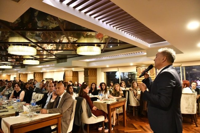 Başkan Uysal, kreşleri, destek eğitim kurs merkezleri, gençleri üniversite sınavına hazırlayan merkezleri, mesleki eğitim kurslarıyla aynı zamanda büyük bir eğitim kurumu olan belediyede görev yapan öğretmenlerle bir araya geldi. Başkan Uysal, 24 Kasım Öğretmenler Günü dolayısıyla düzenlenen buluşmaya eşi Ümran Uysal'la katıldı.