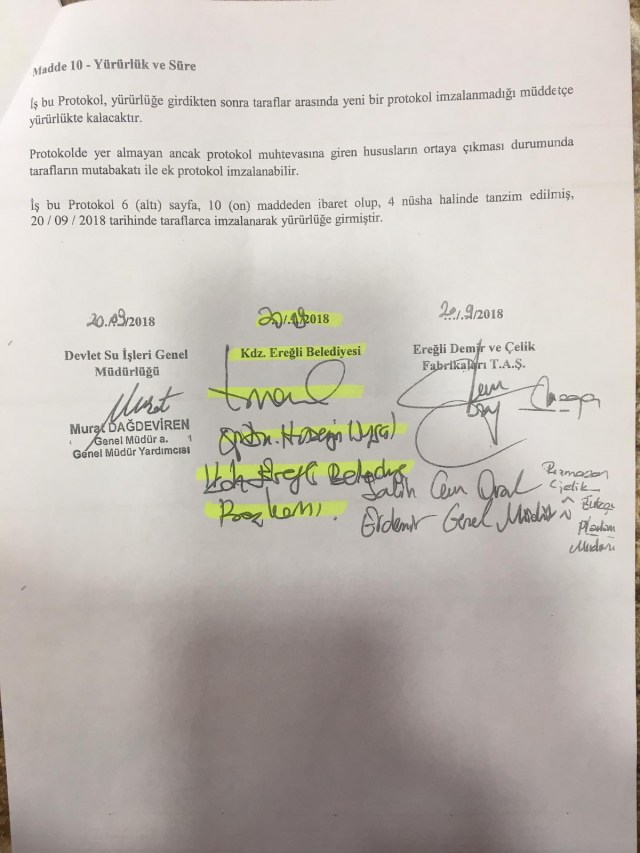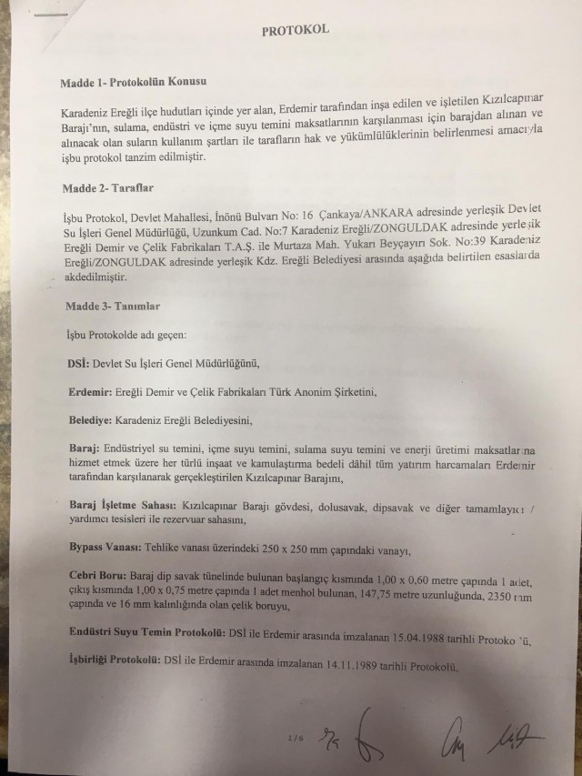 Kdz. Ereğli Belediyesi, 2018’de DSİ ve Erdemir ile birlikte imzalanan su protokolünün iptali için yargıya gidiliyor.