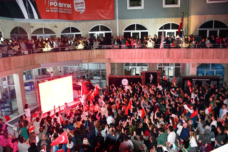 Eşi Neriman Posbıyık, çocukları Tuba ve Tuğberk Posbıyık ile birlikte belediye avlusunda oluşan kalabalığa selamlayan Posbıyık konuşmasına, “Canlarım benim, aşklarım, aşkım Ereğli” diyerek başladı. Posbıyık, kutlamaları daha görkemli yapmayı planladıklarını ancak Çakır’ın vefatı nedeniyle vazgeçtiklerini söyledi. Hüseyin Çakır’ı “demokrasi şehidi” olarak nitelendiren Posbıyık, “Yarın (1 Nisan) saat 11:00’de bu alanda kendisini son yolculuğa uğurlayacağız. Bir kez daha Allah’tan rahmet, ailesine başsağlığı diliyorum” diye konuştu.