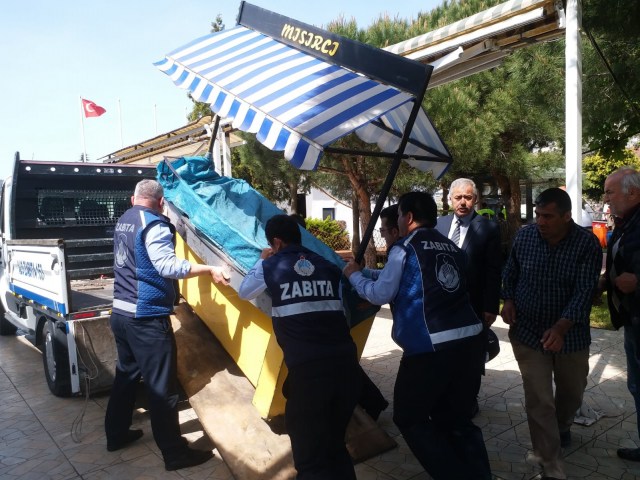 Yapılan çalışma ile sahilde bulunan midyeci, balıkçı, oyuncakçı, mısırcı, akülü araba gibi seyyar tezgahlar ile izinsiz açılan çay ocakları tümüyle kaldırıldı, çekek yerleri temizlendi.
