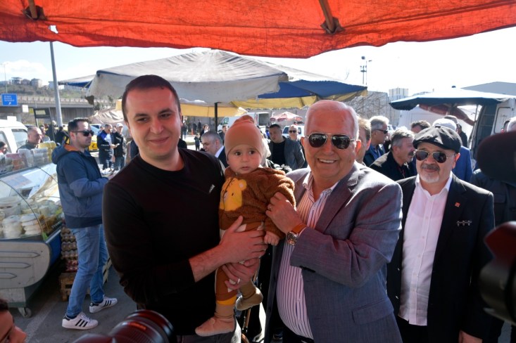 Başkan Posbıyık, beraberinde belediye meclis üyesi adayları Cengiz Güneş, Tasin Tanyıldız, Mert Buğra Özaydın, Çetin Yiğit, Yakup Şekip Okumuşoğlu, Nurullah Özdemir, Murat Gürdal, Murat Yüce, Hüseyin Çakır, Naile Bingöl, Nesimi İlik, Koray İşeri, Kadir Tekin, Yıldıray Arslan, Mehmet Erdinç Sarımsak, Muharrem Sağlam, Gökhan Günay, Batuhan Günce, Yaşare Aydın, Ayhan Deniz, Erkan Mutlu, Bayram Seçen, Gönül Çelik, Ender Uz, Arzu Yazıcı, Mehmet Şükrü Yazganarıkan ile birlikte Cumartesi Pazarı’nda esnafı tek tek dolaştı, hal hatırlarını sordu. Pazar alanına dökülen asfalt için Başkan Posbıyık’a teşekkür eden pazarcı esnafı, ‘Seninleyiz başkanım’ mesajı verdi.