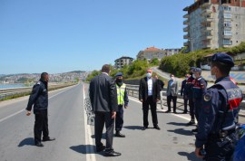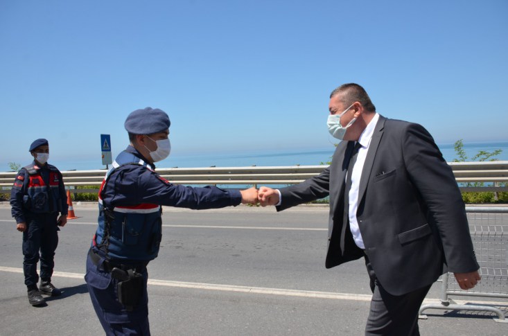 Başkan Tekin, ilk olarak İlçe sınırında yol uygulama ve kontrol noktalarında bulunan jandarma ve polis ekiplerini ziyaret ederek, bayramlarını kutladı, tatlı ikram etti.
