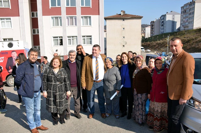Gittiği her yerde halkın derdiyle dertlenen, sevinciyle sevinen Tekin, Afet Konutlarında vatandaşlarla kucaklaştı. Eşi Aysel Tekin, Belediye ve İl Genel Meclis üyeleri ve çok sayıda partili ile birlikte Afet Konutlarına giden Tekin, kapıları tek, tek çalarak vatandaşlara projelerini anlattı.