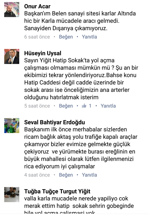 Kdz. Ereğli'yi etkisi altına alan kar yağışı nedeniyle şikayette bulunan vatandaşa Kdz. Ereğli Belediye Başkanı Hüseyin Uysal sosyal medyadan cevap verdi..