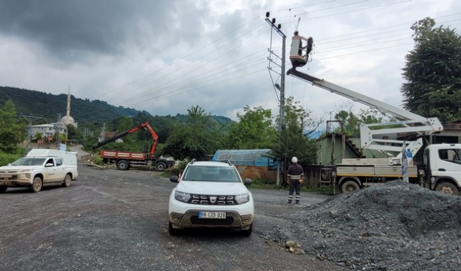 Yağışla oluşan heyelanlar nedeniyle yıkılan direk ve şebeke unsurları hızlıca yenilenirken, yerleşim merkezlerinde yükselen su nedeniyle çarpılma riskine karşı tedbir amaçlı enerji kesintileri yapıldı.