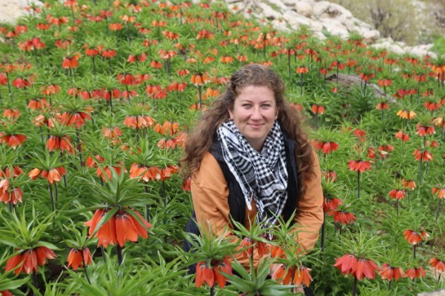 BATMAN İGFA- Batman'a bağlı Kaşyayla köyünün yüksek dağlarında bulunan ters laleleri görüntülemek için 2 saat yürüdüğünü belirten Batman Üniversitesi Sason Meslek Yüksek Okulu Öğretim Üyesi Esra Okudur, Latince adı Fritillaria imperialis olan ters lalenin genellikle soğuk iklimlerde bulunan bir bitki türü olduğunu