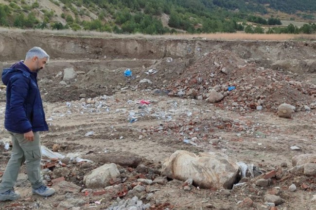 KÜTAHYA (İGFA) - Evliya Çelebi Mahallesi'nde Kütahya Belediyesi tarafından yapımı devam eden Bayraktepe Projesi'nin hafriyat çalışmaları sırasında önceden döküm sahası olarak kullanılan alanda tarihi heykele rastlandı.