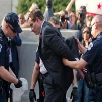 Washington Belediye Başkanı sivil itaatsizlik eylemi yapınca polis kelepçeyi takıp nezarete attı.
