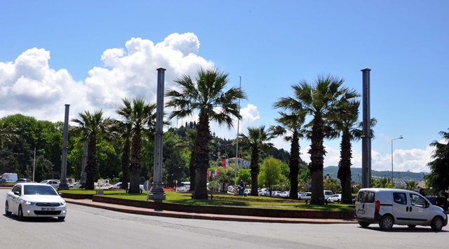 Karadeniz Ereğli Belediyesi’nin ilçe merkezindeki çalışmaları tüm hızıyla sürüyor. Atatürk Anıtı Çevre düzenlemesi sürerken, anıt kavşağındaki süs direkleri de söküldü. Ortacami mevkiindeki DSİ su hatların üstü betonla kapatıldı.