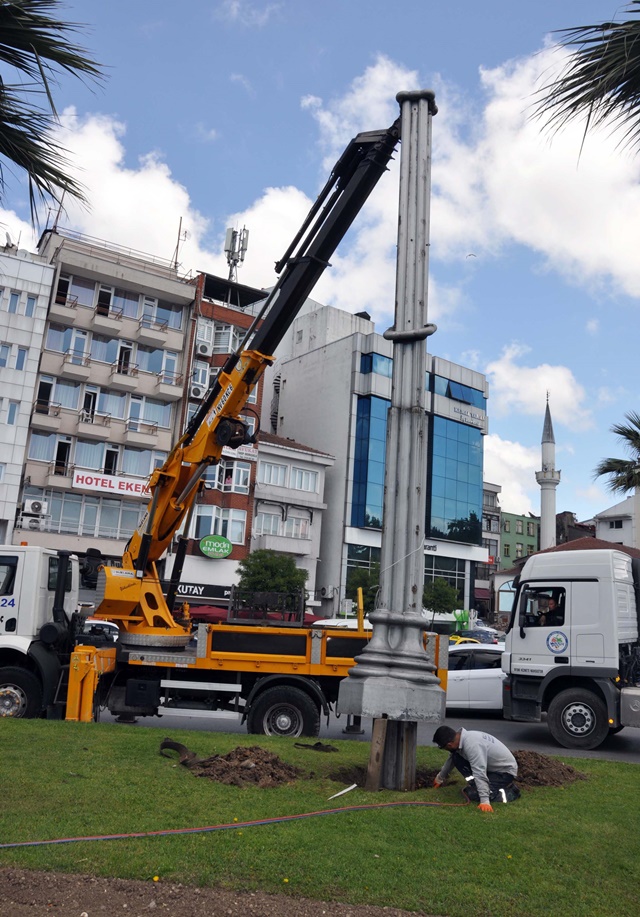 Çarşı merkezindeki çalışmaların sürdüğünü belirten Belediye Başkanı Hüseyin Uysal, “17 yıl önce yapılan Anıt Kavşağındaki ekonomik ömrünü tamamlayan 7 adet süs ve aydınlatma direkleri söküldü. Bu alanda peyzaj çalışması ve çiçeklendirme yapacağız. “ dedi.