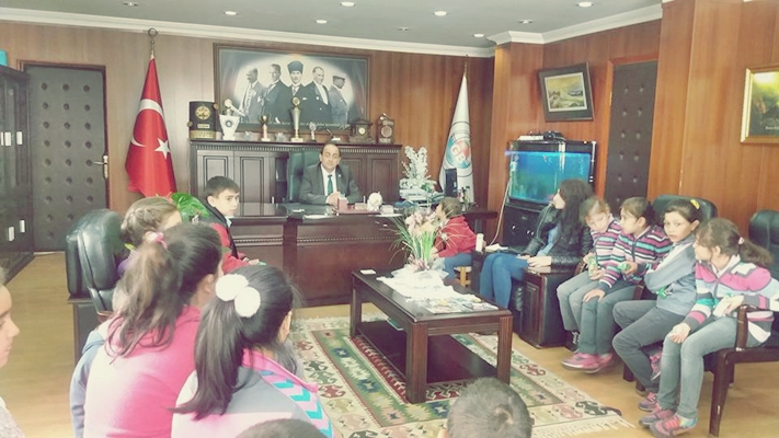 Gülüç Vesile Dikmen İlköğretim okululundan 4-D, 4-E,4-F sınıfı öğrencileri, sınıf öğretmenleri Serap Ekici,Mehtap Tetik ve Pınar Ocakçı eşliğinde, Belediye Başkanımız Gökhan M.Demirtaş'ı,Yerel yönetimlerin yapısı ve işleyişi hakkında bilgi almak için ziyaret ettiler.