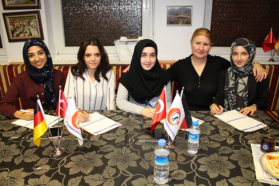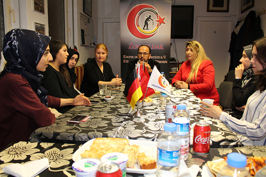 Zonguldak Bülent Ecevit Üniversitesi, Avrupa Zonguldaklılar Derneği ve Castrop-Rauxel Derneğinin işbirliği ile 2 haftalığına Almanya’ya da misafir edilen 4 kız öğrenci, merkezi Gelsenkirchen şehrinde bulunan Avrupa Zonguldaklılar Derneğinin lokalinde, derneğin kadın kolları bir araya geldi.