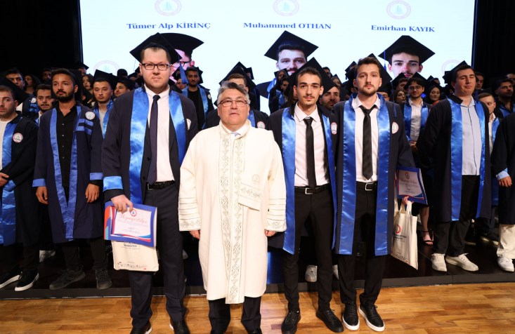 2024-2025 Akademik Yılı Mühendislik Fakültesi Mezuniyet Töreni, açılış konuşmalarının tamamlanmasının ardından fakülte birinci, ikincisi ve üçüncüsüne BEUN Rektörü Prof. Dr. İsmail Hakkı Özölçer’in hediye takdiminde bulunmasıyla devam etti. Ardından fakülte akademisyenleri sahneye gelerek tüm mezunlara mezuniyet belgesi takdiminde bulundu. Mezuniyet Töreni, günün anısına toplu fotoğrafı çekilmesiyle son buldu.