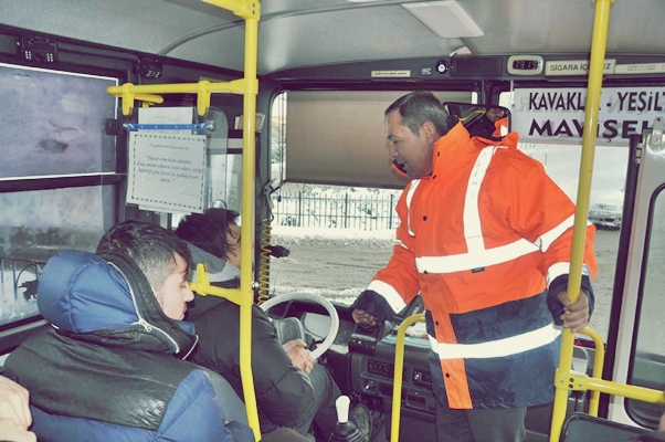 Kdz. Ereğli Belediye Başkanı Hüseyin Uysal, kar yağışı ile mücadele çalışmalarını yerinde inceledi. Başkan Yardımcıları ile birlikte yaptığı saha gezisi sırasında, Halk Otobüsüne binerek yolculuk yapan Uysal, toplu taşıma araçlarının hareketlerini izleyen merkezde de yetkililerden bilgiler aldı.