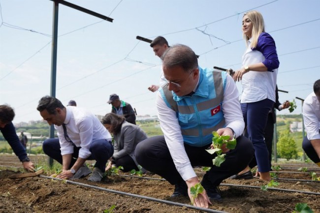 Gıda Bankası aracılığıyla ihtiyaç sahibi ailelerin temiz ve güvenli gıdaya eriştiği projeyle bugüne kadar yaklaşık 250 tonun üzerinde mahsul üretildiğini de dile getiren Belediye Başkanı Mehmet Murat Çalık, "Pandemi döneminde oluşturduğumuz Yaşam Bahçesi gerçekten çok özel bir alan. Bugün burada atalık tohumlarımızdan ürettiğimiz tohumları emekçi arkadaşlarımızla birlikte toprakla buluşturuyoruz. İnşallah birkaç ay içerisinde de hasadımızı yapacağız. Bir evin mutfağı neye ihtiyaç duyuyorsa biz onu Yaşam Bahçesi'nde üretiyoruz. Üretmek önemli ve bunu atalık tohumları ile üretmek çok daha kıymetli. Bu kentin toprakları bu kentin yoksullarını doyuracak diye yola çıkmıştık. Aynı anlayışla burada üretmeye devam edeceğiz ve tarımsal üretime katkı sağlayacağız" ifadelerini kullandı.