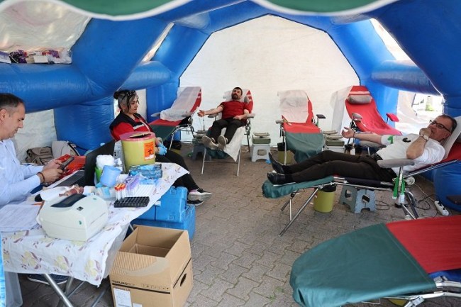 Kayseri Hacılar Meydanı'nda Erciyes Üniversitesi Kan Merkezi tarafından bir çadır kuruldu. Kan bağışı konusunda ilçe halkını bilinçlendirmek ve kan vermek isteyenlerin kan bağışlarını alan çadırı ziyaret eden Hacılar Belediye Başkanı Bilal Özdoğan, donör kazanım uzmanı Fatih Polat'tan çalışmalar hakkında detaylı bilgi aldı. Bilgilendirmeden sonra Başkan Özdoğan kan bağışı için kollarını sıvadı. Kan bağışının önemine dikkat çeken Başkan Özdoğan, "ERÜ kan merkezi çalışanlarına ilçemizde böyle bir etkinlik düzenledikleri için teşekkür ediyorum. Biz de düzenli olarak kan vermeye çalışıyoruz. Erkeklerde üç ayda bir, kadınlarda ise dört ayda bir kan verilmesi tavsiye ediliyor. Kan vererek can veriyoruz, hayat veriyoruz. Kan vererek hem ihtiyacı olanlara umut oluyoruz hem de sağlığımızı koruyoruz." dedi.