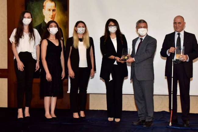 İstinye Üniversitesi ekibi ‘Daha erişilebilir bir dünya için yapay zekâ’ adlı projeleriyle 2-4 Eylül tarihlerinde Manisa’da düzenlenen Biltevt2021: Uluslararası Engelsiz Bilişim 2021 Kongresi’nde, ‘Engelsiz Bilişim Sosyal Sorumluluk Projesi Ödülü’nü almaya hak kazandı. Ödülü İstinye Üniversitesi Yönetim Bilişim Sistemleri Bölümü öğrencileri adına Dr. Şebnem Özdemir ve projeye destek veren veri analizi firması Ereteam çalışanları Aslı Nur Tunçer ile Gizem Aydın aldı.