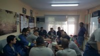 Şube Başkanı Metin Ercan sosyal medya üzerinden yaptığı açıklamasında, Demir Üretim Direktörlüğü Hammadde ve Manipülasyon Başmühendisliği, İşletme ve Bakım, Kok Müdürlüğü Bakım ve İşletme, Yüksek Fırınlar Müdürlüğü, Sinter İşletme, Enerji Üretim ve Dağıtım, Yardımcı İşletmeler bölümlerinde çalışan işçilerle bir araya gelerek güncel konulara ilişkin bilgiler verdiklerini söyledi.