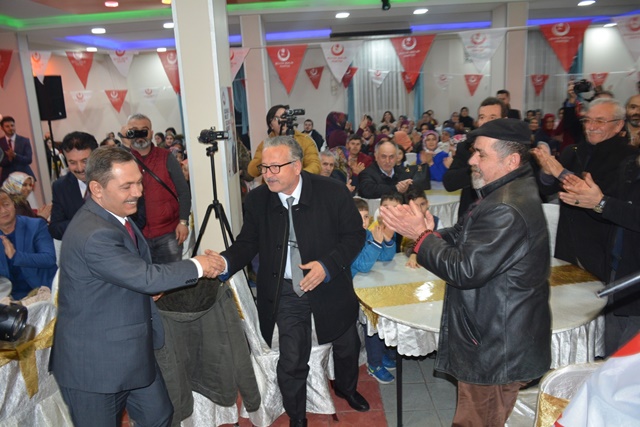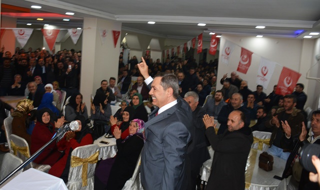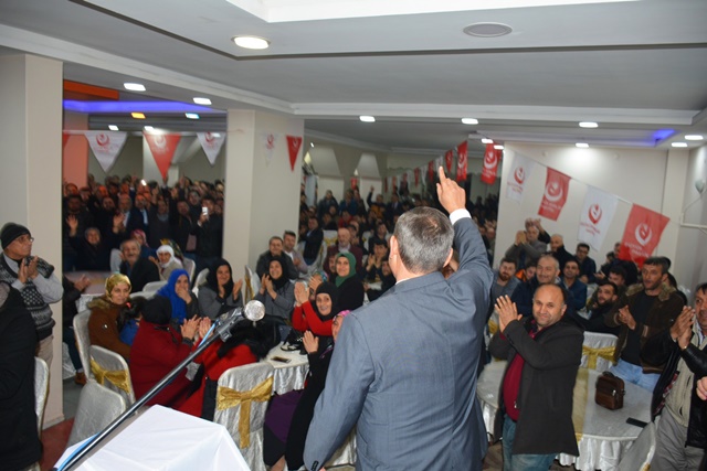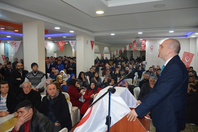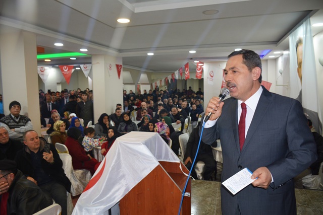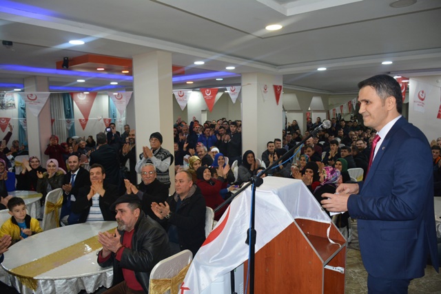“5 yıl her ortamda, her yerde doğru bildiğimize doğru dedik, yanlışa yanlış dedik. Doğrudan, adaletten ayrılmadık. Birileri kötü miras alacağız diye konuşmaya başladı. Biz göreve geldiğimizde kötü miras aldık, seller geldi demedik, mazeret üretmedik. Kolları sıvadık, hizmet ettik. 5 yıl boyunca bir gün of dedim mi, öf dedim mi, şikayet ettim mi , şöyle belediye aldım dedim mi ? demedim. Şimdi söylüyorum göreve geldiğim de 84 milyon bütçe ,40 milyon 300 bin lira İlller bankası ve özel bankaya borç vardı, kim ödedi, o kötü miras alacaz dedikleri belediye. Diyorlar ki 1 yıl anca belediyeyi düzeltiriz diyorlar. Sen 1 yıl ne yapacaksın. Huylu huyundan vazgeçer mi, 1 yıl insan boşta kalır mı ? 1 yıl bir şey yapmayacaksan gelme kardeşim. Niyet belli kavga. Belediye düzenli, belediye yürüyor, hem de aslanlar gibi. Kötü miras alacağız diyenlere inanmayın. Onların derdi kavga. Birileri de Ereğli‘de esnafın durumu belli iken indirim günleri diyor. Esnafın üstüne çullanacaklar. Ben dışarıdan birilerini getirdim mi. Hayır. Yine getirmeyeceğim. Ereğli esnafı kazanacak. Şimdi tutmuşlar Büyük Birlik Partisinin oyunu hesaplıyorlar. Boşuna hesaplamayın. Benim ve yol arkadaşlarımın yürekleri büyük, rozetleri değil. Bizler ranta, yemeğe, içmeye, yan yatmaya gelmiyoruz, hizmete talibiz. Özümüz millet, sözümüz hizmet.”