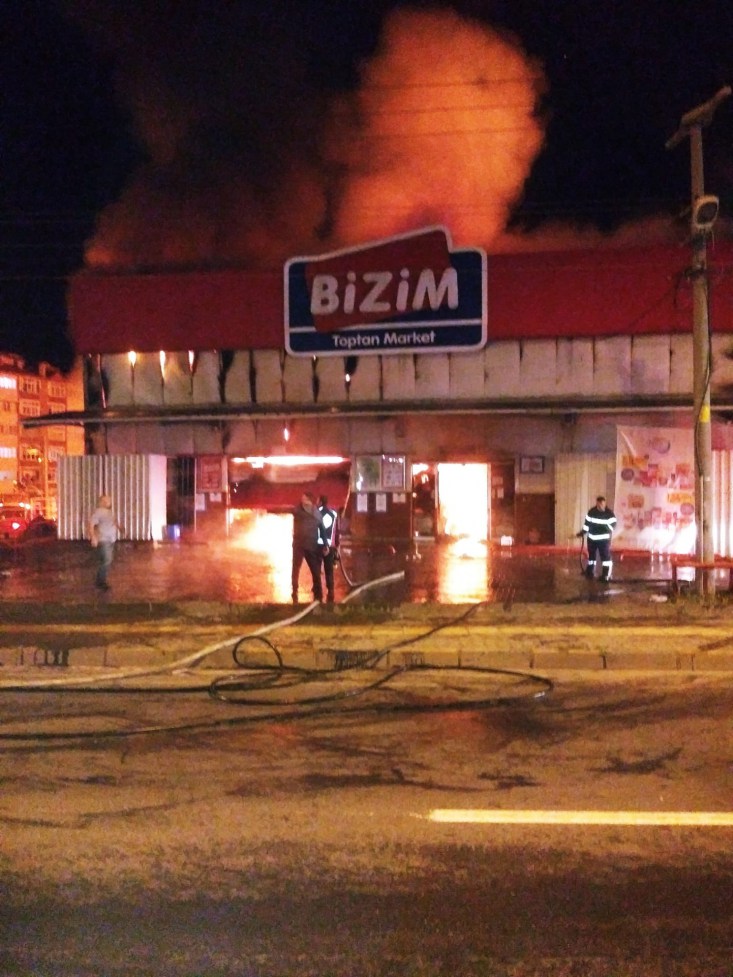 Kdz.Ereğli Kepez mevkinde faaliyet gösteren alışveriş merkezi Bizim Toptan da, kısa süreli kontrol altına alınan yangın yeniden başladı.
