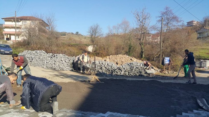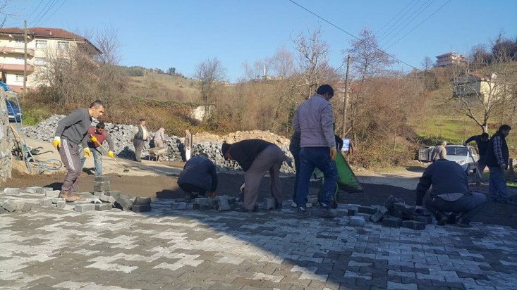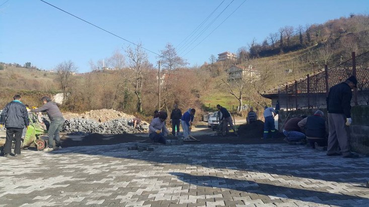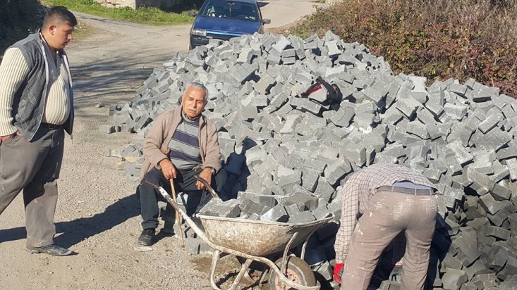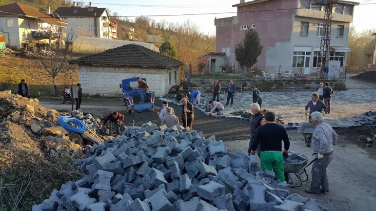Kdz. Ereğli'nin başarılı muhtarlarından Hasan Korkmaz'ın da bizzat katıldığı taş parke döşeme işi, köy halkının da desteğiyle, kısa sürede tamamlandı..