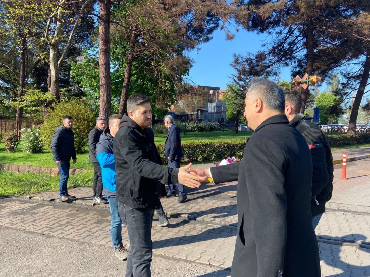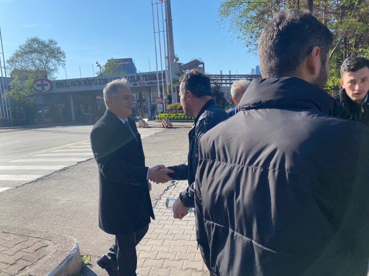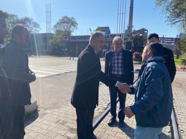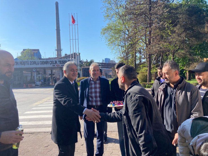 AK Parti Zonguldak Milletvekili adayı Saffet Bozkurt, 1 Mayıs İşçi Bayramı nedeniyle Ereğli Demir ve Çelik Fabrikaları'nda gündüz vardiyasında işe girecek olan işçilerin gününü kutladı.