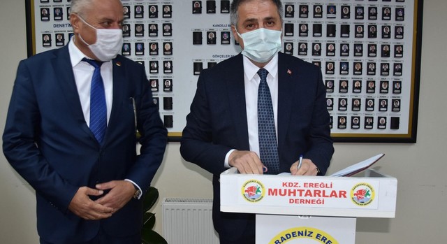 Ziyarette konuşan Muhtarlar Derneği Başkanı Şükrü Kılıç, “Ereğli menfaatleri doğrultusunda kim taş üstüne taş koyarsa başımıza taç yaparız” dedi.