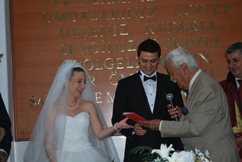 Nikah'ın kıyılmasının ardından aile cüzdanını çiftlere müşterek olarak takdim eden Eski Başbakan Yardımcısı, İçişleri ve Milli Savunma Bakanı İsmet Sezgin, "Her iki aileyi de kutluyorum.Bu birliktelik bir ömür boyu sürsün."dedi.