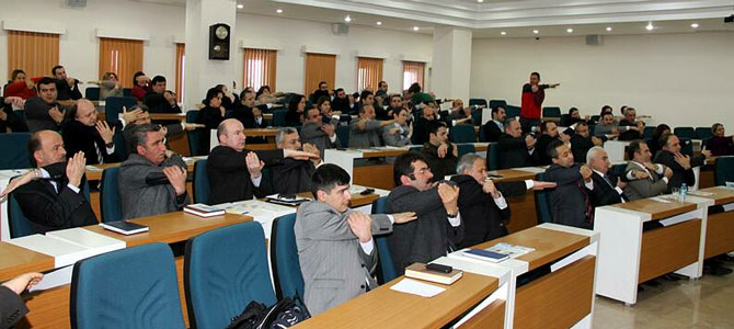 Ardından müdürlük uzmanlarınca projenin tanıtımı yapılarak dinleyicilerin de katılımıyla masa başında yapılabilecek egzersizlerden örnekleri gösterildi.