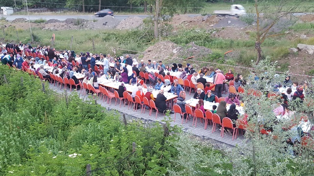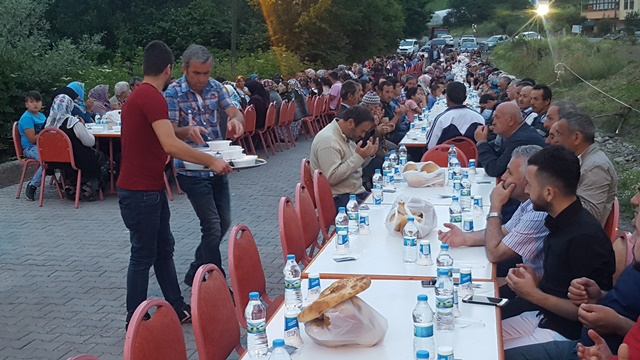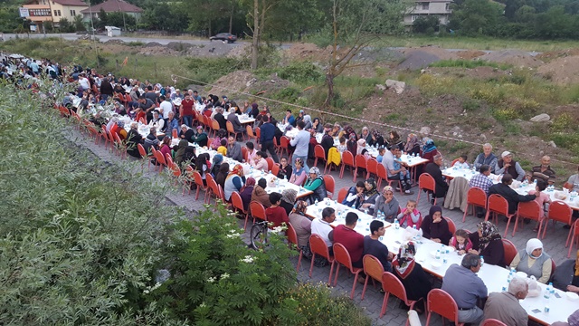 Önceki yıllarda köy okulunun bahçesinde yapılan iftar, bu seneki katılımın fazla olması nedeniyle, yeni parke döşenen köy yolu üzerinde yapıldı...
