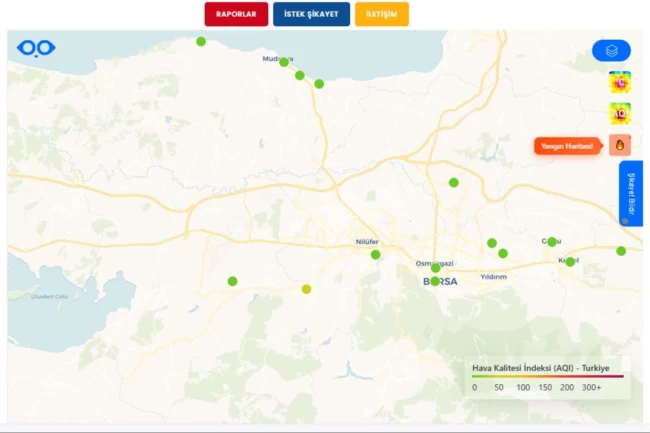 Çevre Koruma ve Kontrol Dairesi Başkanlığı tarafından geliştirilen sistemle, Bursa'daki ve Türkiye'deki tüm yangın noktaları online izlenebilecek. Büyükşehir Belediyesine ait https://www.bursa.bel.tr/hava-kalitesi adresine girenler, ateş ikonuna tıklayarak yangın noktalarını anlık görüntüleyebilecek.