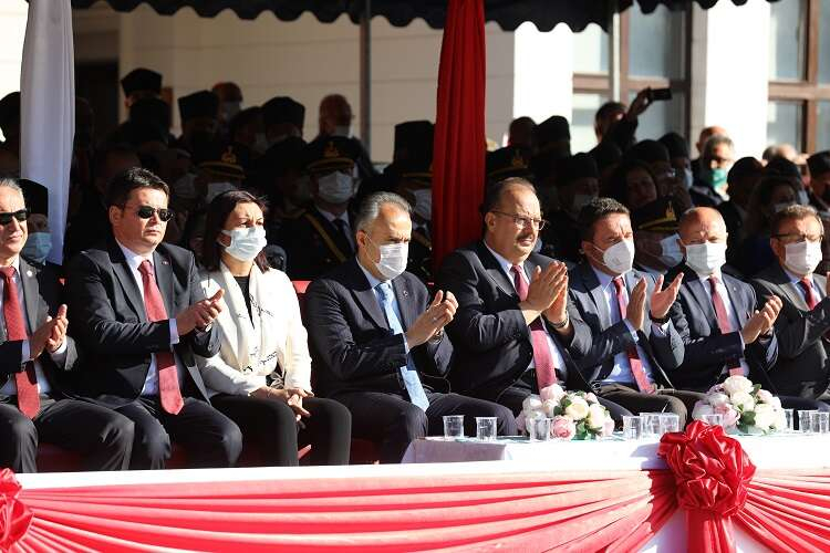 İstiklal Marşı’nın okunarak Türk Bayrağı’nın göndere çekilmesinin ardından konuşan Vali Canbolat, vatandaşların Cumhuriyet Bayramı’nı kutladı. Türk Milleti’nin 1923’te bir kez daha tüm dünyaya iradesine pranga vurulamayacağını kanıyla, canıyla gösterdiğini dile getiren Canbolat, Cumhuriyet’in ilanın eşsiz bir zafer olduğunu ve Türk insanının istiklal ve istikbalinin ebedileştiğini belirtti. Mustafa Kemal Atatürk ve silah arkadaşlarının destan yazarak kurduğu Cumhuriyet’in geleceğe emin adımlarla taşındığını ifade eden Canbolat, Büyük Türkiye yolunda hedeflerine tek tek ulaştığını dile getirdi.