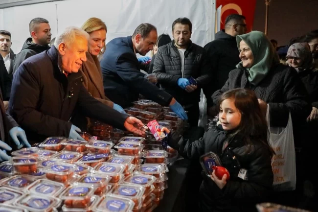 Bursa Büyükşehir Belediyesi, Miraç Kandili'nin manevi atmosferini kent genelinde yaşatmak amacıyla 17 ilçede vatandaşlara tatlı ikramında bulundu.