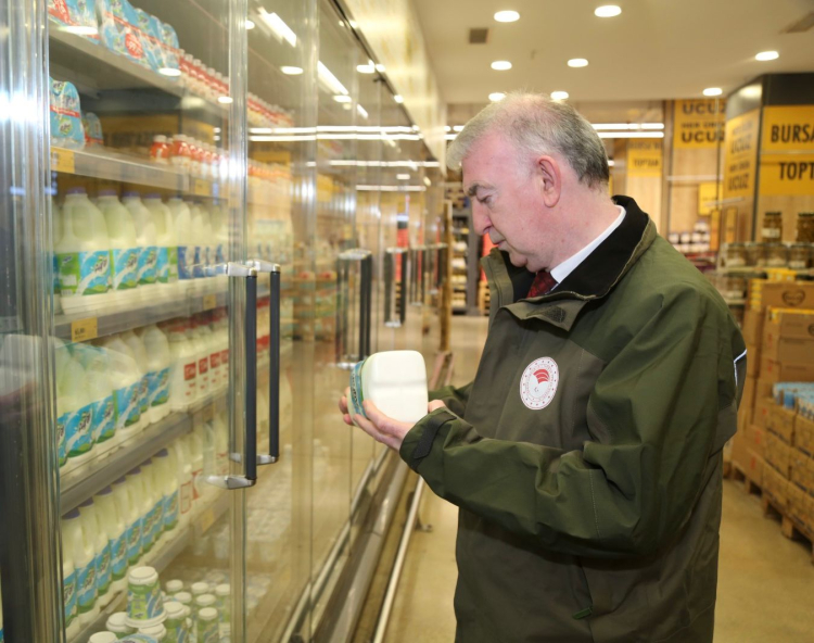 Tarım ve Orman Bakanlığı Gıda ve Kontrol Genel Müdürlüğü koordinasyonunda 81 ilde başlatılan süt ve süt ürünleri denetimleri kapsamında Bursa'da market, şarküteri ve toplu tüketim noktalarında kapsamlı kontroller yapılıyor.