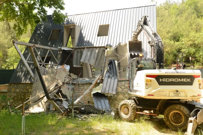 Zabıta ekiplerinin güvenlik önlemleri eşliğinde gerçekleştirilen yıkım çalışmasında, bin 900 metrekarelik arazi üzerine kurulu toplam 270 metrekarelik iki kaçak villa ile birlikte alandaki müştemilat da kullanılamaz hale getirildi.