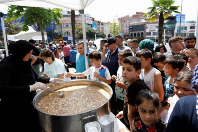 BURSA (İGFA) - İnegöl Belediyesi birlik ve beraberliğin artması, kardeşliğin pekişmesi, muhabbet ve dostluğun çoğalması, bolluk ve bereketin her haneye girmesi adına her yıl olduğu gibi bu sene de geleneği bozmayarak ilçe halkına aşure ikramında bulundu.
