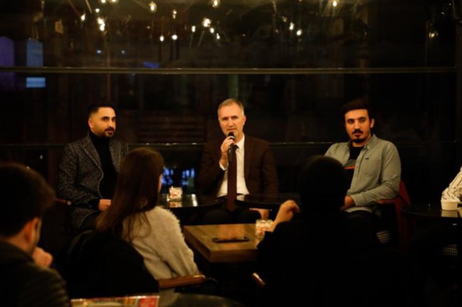BURSA (İGFA)- Çaylar Başkandan sloganıyla daha önce de farklı lokasyonlarda öğrenciler ve gençlerle bir araya gelen İnegöl Belediye Başkanı Alper Taban, Cuma akşamı Uludağ Üniversitesi İnegöl Meslek Yüksekokulu’nda okuyan öğrencilerin ağırlıkta olduğu bir grupla buluştu.