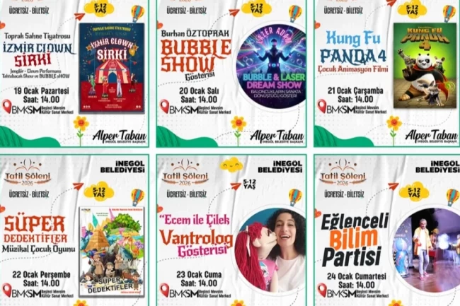 İnegöl Belediye Başkanı Alper Taban, ara tatilde çocukların keyifli ve verimli vakit geçirmesini önemsediklerini belirterek, "Çocuklarımızın yüzünü güldürecek, hayal dünyalarını geliştirecek ve güzel anılar biriktirecekleri bir tatil programı hazırladık. Tüm çocuklarımızı Tatil Şöleni 2026 etkinliklerimize davet ediyorum." dedi.