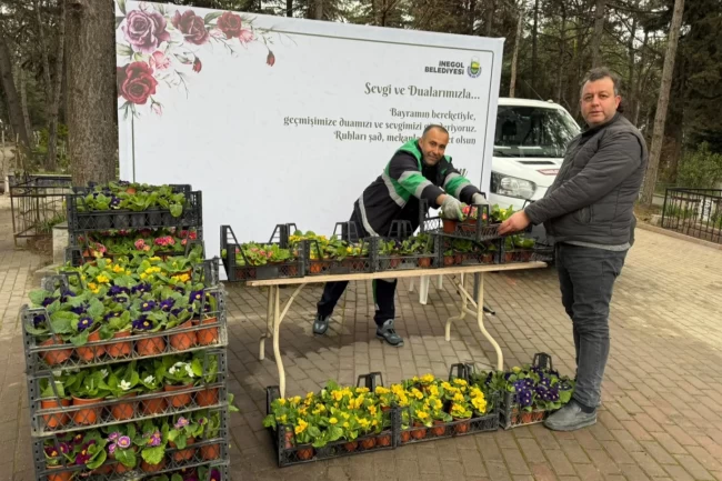 İnegöl Belediyesi Park Bahçeler Müdürlüğü ile Defin Hizmetleri Müdürlüğü'nün ortak çalışması kapsamında; İstanbullu Hasan, Kavaklaraltı, Hastane, Orhaniye, Mahmudiye 1 ve 2 ile Hamzabeyli Sadık Ağa Kent Mezarlığı'nda toplam 9 bin çiçek dağıtıldı. Mezarlıkları ziyaret eden vatandaşlar, aldıkları çiçekleri yakınlarının kabirlerine dikerek alanları adeta birer çiçek bahçesine dönüştürdü.